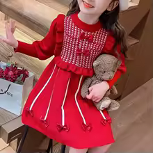 2025 New Winter Knit Wool Girls Dress Stylish Autumn Baby New Year Outfit Kids Knitted Sweater Dress.