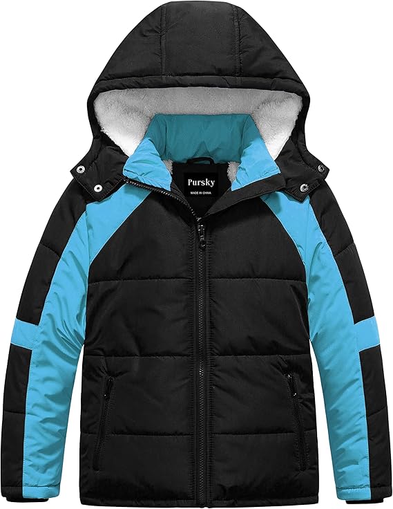 Pursky Boy's Warm Winter Coat Water Resistant Sherpa Outerwear Puffer Jackets With Removable Furry Hood.