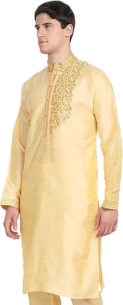 SKAVIJ Men's Tunic Art Silk Long Shirt Embroidered Casual Kurta.
