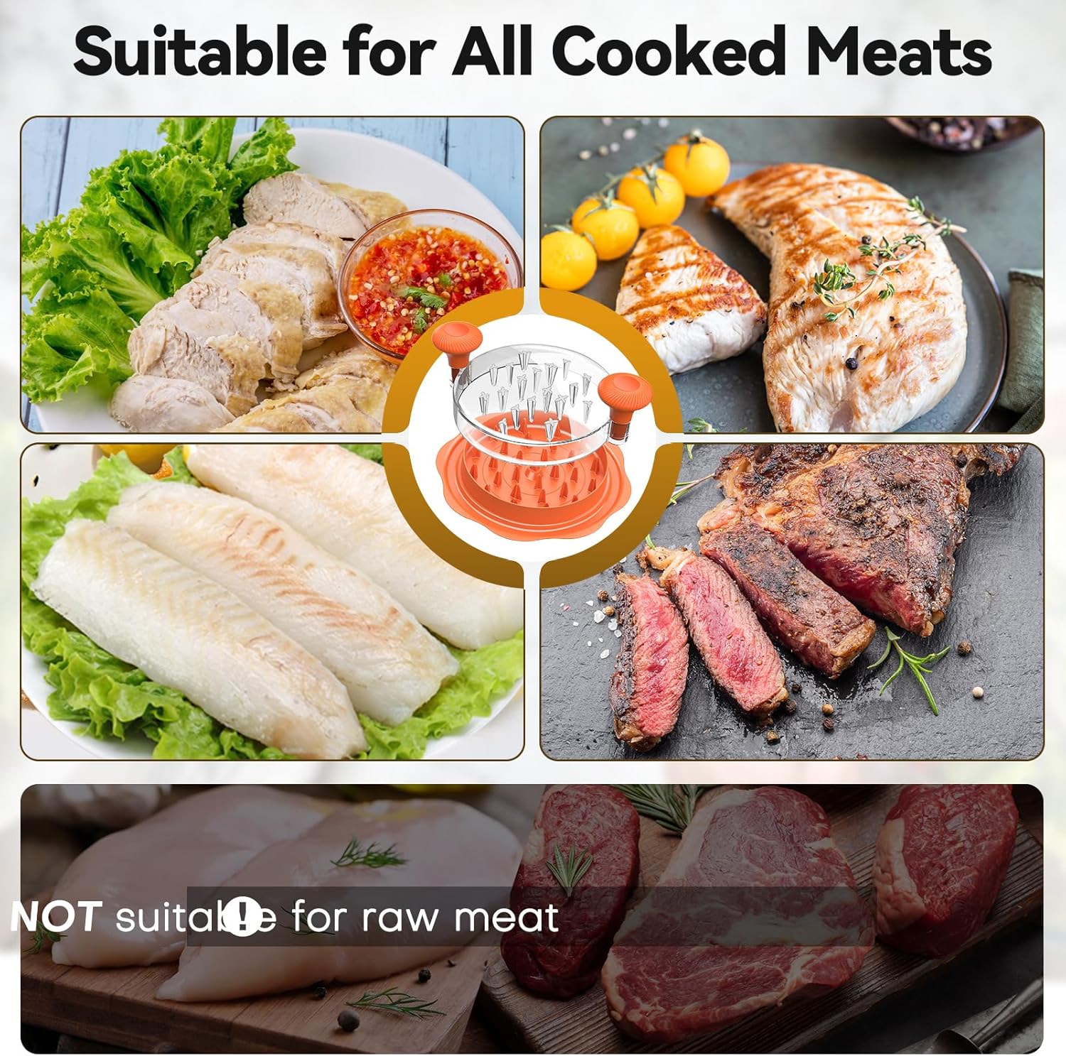 【Food Safe】 Made of premium food grade material, the BPA-free chicken shredder is perfect for making salads, grilled meats, tuna bowls or pet food.