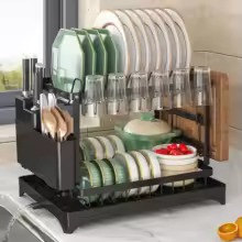Maximize your kitchen counter space and streamline your dish-drying process with this versatile 2-Tier Dish Drying Rack. Designed for efficiency and convenience, this all-in-one organizer keeps your dishes, utensils, and glassware neat, dry, and easily accessible.