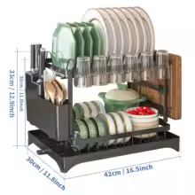 2 tier,dish drying rack,Cutlery rack with spout and draining tray,cutlery holder,cup holder,kitchen countertop storage rack.