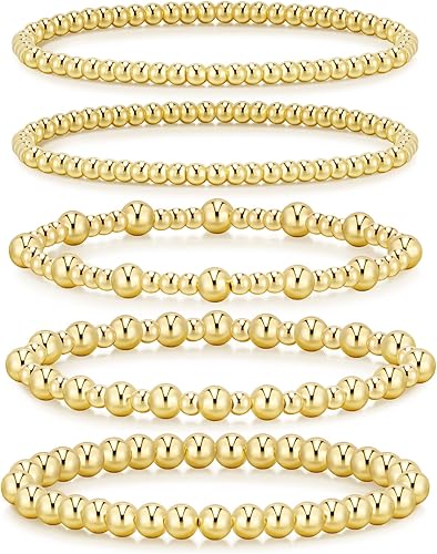 Gold beaded Bracelets for Women: 5PCS Trendy Gold bracelets set are stackable. Each gold bracelet can be worn separately or wear them together, or in combination with other bracelets to create their own style.