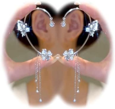 Butterfly Tassel Zircon Earrings and Ear Cuffs - No Piercing Flower Climber Wrap Around Earrings - Fairy Ear Clip Jewelry Gifts.