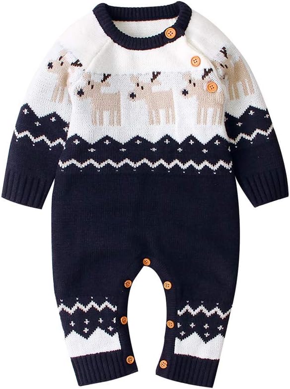 MATERIAL: Cotton blend, warm and cozy baby one-piece knitted romper with different design, baby boy christmas outfit, great for fall, winter and early spring