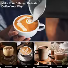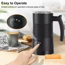 The Ultimate 4-in-1 Electric Milk Frother: Your Home BaristaThis Electric Milk Frother is an automatic, rotary foaming and steaming machine designed to bring the coffee shop experience right into your kitchen.1 With its versatility and simple one-touch operation, it is the perfect accessory for preparing professional-quality beverages like Cappuccinos, Lattes, Macchiatos, Hot Chocolate, and more.2Key Features & FunctionsThis device features a powerful 4-in-1 functionality, making it highly versatile for all your beverage needs:3Hot Dense Foam: Creates rich, creamy, and voluminous froth for a traditional cappuccino experience.4Hot Airy Foam: Produces lighter, smoother foam ideal for lattes and macchiatos.5Hot Milk/Steaming: Heats milk to the perfect serving temperature (often around $60^{\circ}\text{C}$ - $65^{\circ}\text{C}$) without scalding, perfect for hot chocolate or a simple warm beverage.Cold Froth: Creates dense, velvety cold foam in minutes for iced coffees, cold brew, and chilled desserts.6Design and Ease of UseAutomatic Rotary Foamer: The built-in magnetic or rotary whisk system operates automatically, eliminating the need for manual frothing and ensuring consistently perfect results every time.One-Touch Operation: Simple control makes it easy to select your desired function and start/stop the process.7Generous Capacity: Typically designed to froth milk up to a capacity of 8$160\text{ml}$ and heat milk up to 9$350\text{ml}$ (or similar volumes), perfect for sharing or making large mugs.10Durable and Easy to Clean: Constructed with high-quality materials, often featuring a non-stick coating or a detachable stainless steel jug and a separated base, making cleanup quick and hygienic.11Safety Features: Includes automatic shut-off and a separated base to prevent dry burning and ensure safe operation.12Benefits for the UserBarista-Quality at Home: Effortlessly create a wide range of hot and cold coffee drinks with professional-level foam texture.13Speed and Convenience: Get rich, creamy froth in just a few minutes with minimal effort.14Versatility: Use it with various types of milk, including dairy (whole milk is often recommended for best results) and non-dairy alternatives..{getProduct} $button={Buy Now} $price={$25.48 }$sale={0%off}