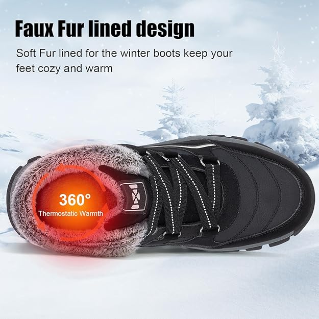 LINING for COMFORT: Winter snow boots for Men featured thicken fur lining that keep your feet warm and cozy in clod weather. The collar at the top is designed to wrap your ankle and enhance warmth, stopping the moisture and cold away
