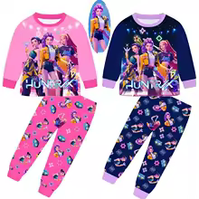 Let your kids bring the excitement of the K-Pop Demon Hunters movie/music phenomenon into their daily wear and bedtime! This fun and comfortable two-piece set is perfect for young fans of the popular franchise, including characters like Rumi, Mira, and Zoey (Huntrix).