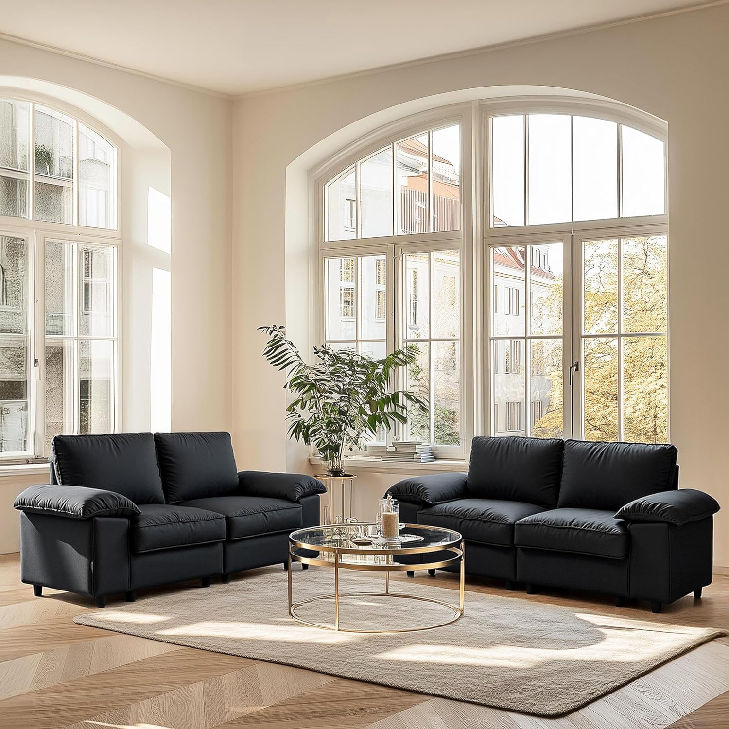 Excillen Apartment & Small Living Room Sofa Set (Black).
